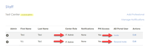 i. If they are not set to IT Admin, click on Edit and change their Center Role.