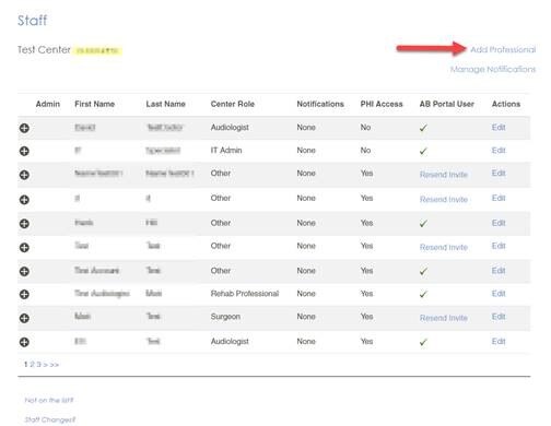 5. Click on the Add Professional button – this will add the IT designate as a Staff Member of your center, and send them an email invitation to complete the creation of their account.