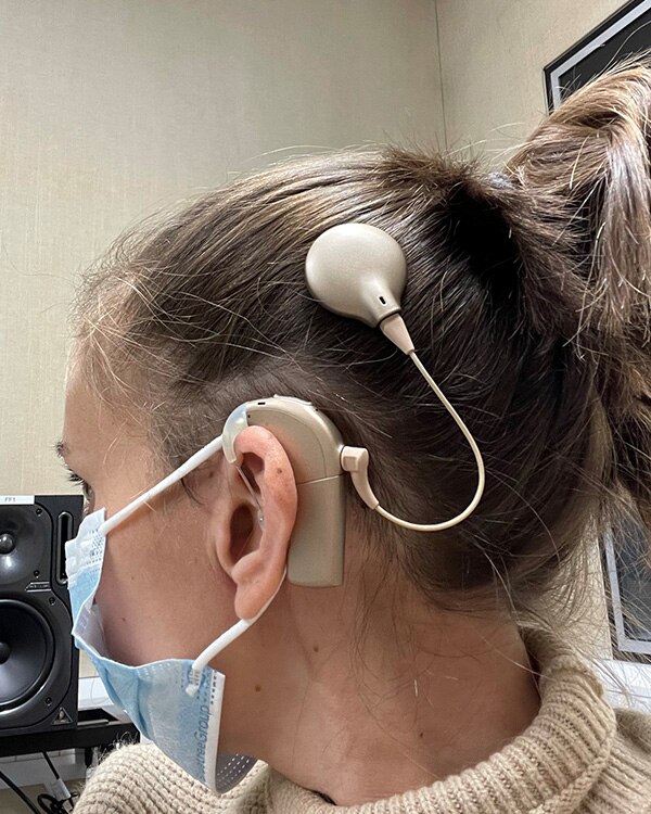 Everything I was reading about cochlear implants was positive and stated that on switch-on day people could hear everything. So, on September 8, 2021, I drove to Cambridge to have my surgery. The procedure was successful, but two days later I put in my hearing aid and broke down crying. I knew there was no going back now since I wasn’t able to hear with my hearing aid anymore, which was one of the risks of the operation. I knew this was going to be the hard part, as I could only wear one hearing aid! But I just didn’t realise how hard!